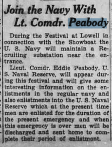 The 1941 headliner for the Lowell Showboat was Eddie Peabody.